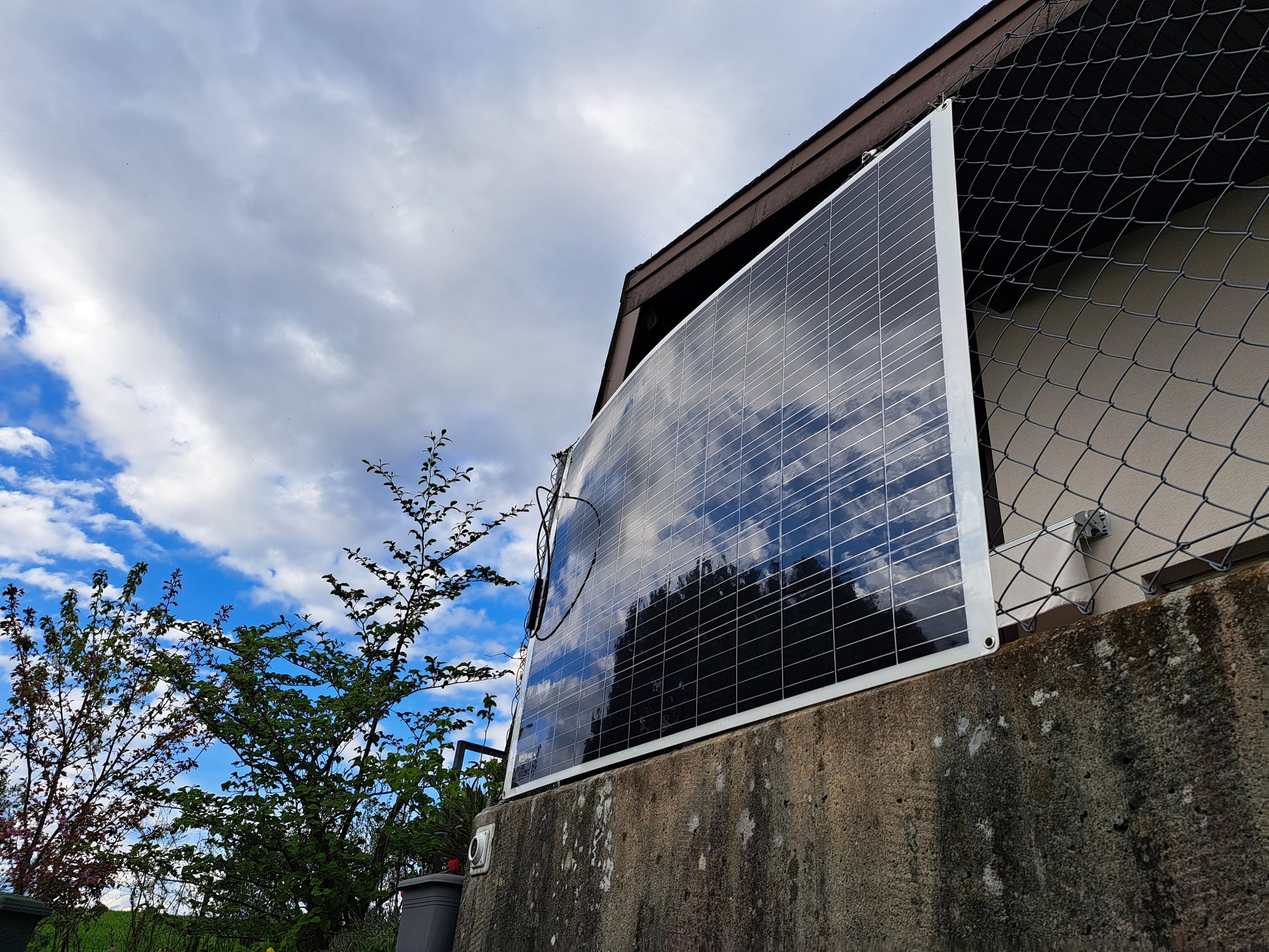 Flexible und kann somit leicht montiert werden. Die Solarzellen sind auf einer leicht flexiblen Kunststoffplatte aufgezogen, so dass die Platte leicht beweglich ist (nicht faltbar)